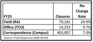- In 2025, the IRS experienced substantial cutbacks in enforcement resources, resulting in the loss of many of its face-to-face auditors (mostly revenue agents). The impact will be reduced number of complex audits to wealthy individuals and larger businesses. The overall impact has not yet been understood.